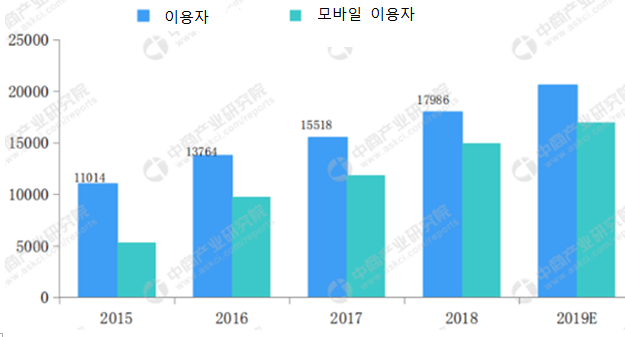 2015~2019년 중국 온라인 교육 이용자 현황 및 예측