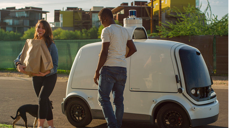 2016년 실리콘밸리에서 구글 자율주행자동차 웨이모 출신 2명의 엔지니어가 탄생시킨 스타트업 ‘누로(Nuro)’에서도 자율주행 배달 로봇 R1, R2를 이용한 배송 서비스를 운영 중이다. 누로는 기존의 배달 로봇과 달리 인도가 아니라 도로를 주행할 수 있도록 설계된 것으로 라이더, 레이다, 카메라 등 자율주행자동차에 사용되는 센서 덕분에 보행자 및 장애물 회피가 가능하다. 누로는 최근 무인 자율주행 배송 차량 운행 허가를 받고 캘리포니아 지역에 R2를 투입해 의료용품의 배송을 진행하고 있다. 뿐만 아니라 누로는 코로나19로 인해 임시 의료시설로 쓰이는 산마테오 이벤트 센터와 슬리프 트레인 아레나에서 음식, 개인보호장구, 침구 등을 운송하며 대면 접촉을 최소화해 효과적으로 물건을 배송해주는 서비스를 개진하기도 했다.