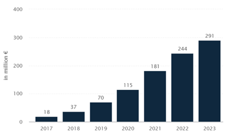 - 2020년부터 시장 규모는 매년 약 20% 이상의 높은 성장률을 보일 것으로 예상되며 2023년에는 약 2억 9천만 유로에 이를 것으로 보임.