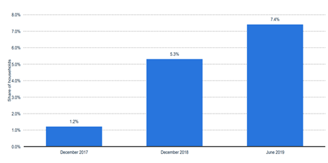 프랑스 가구 인공지능 스피커 보급률(2017~2019년)