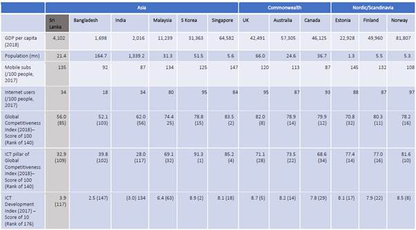 다른 국가와 비교해 본 스리랑카 ICT 사용 상황