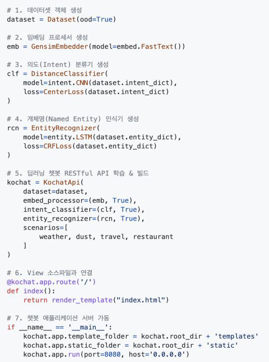 이러한 문제점을 해결하기 위해 연구진이 만든 것이 국어 전용 오픈소스 목적지향 챗봇 프레임워크인 Kochat 입니다.